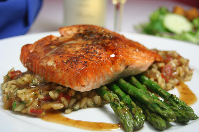 auf Limetten- Mascarpone- Risotto und grünen Spargel